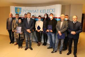 Oddział Świętokrzyski PFRON aktywnie wspiera osoby z niepełnosprawnościami. Dzięki środkom przekazanym starostwu kieleckiemu, kolejne siedem osób otrzymało wsparcie na rozpoczęcie działalności, a trzem pracodawcom przyznano środki na wyposażenie stanowisk pracy dla osób z niepełnosprawnościami. Umowy podpisał starosta kielecki Mirosław Gębski w obecności członka Zarządu Powiatu w Kielcach Stefana Bąka, senatora RP Krzysztofa Słonia oraz dyrektora Oddziału Świętokrzyskiego PFRON Andrzeja Michalskiego. W bieżącym roku Starostwo w Kielcach przekazało ze środków Państwowego Funduszu Rehabilitacji Osób Niepełnosprawnych na włączanie zawodowe osób z niepełnosprawnością 1 920 000 zł.