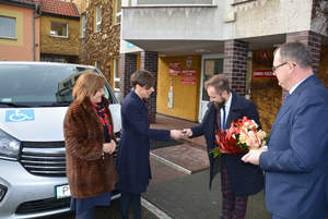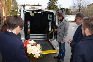 Podopieczni Domu Pomocy Społecznej w Pleszewie będą mogli korzystać z nowego busa dofinansowanego ze środków Państwowego Funduszu Rehabilitacji Osób Niepełnosprawnych. Kluczyki do nowego samochodu zostały uroczyście przekazane na ręce Grzegorza Grygla, dyrektora Domu Pomocy Społecznej przez Annę Skupień, dyrektor Oddziału Wielkopolskiego PFRON. W uroczystości wzięli udział także: Grażyna Kaczmarek, dyrektor Powiatowego Centrum Pomocy Rodzinie w Pleszewie oraz Maciej Wasielewski, Starosta Pleszewski.