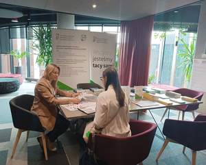 Uczestnikom Targów Pracy w Poznaniu przybliżone zostały także założenia Centrum Informacyjno-Doradczego dla Osób z Niepełnosprawnością funkcjonującego przy Oddziale Wielkopolskim PFRON. Udzielaliśmy też informacji o możliwości skorzystania z wypożyczalni technologii wspomagających dla osób z niepełnosprawnością, w ramach której istnieje możliwość wypożyczenia między innymi: aparatów słuchowych, czy też urządzeń wspomagających słyszenie.