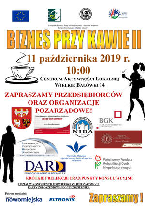 Po raz kolejny w Centrum Aktywności Lokalnej w Wielkich Bałówkach 11 października br. odbyła się Konferencja „Biznes przy kawie” zorganizowana przez Lokalną Grupę Działania Ziemi Lubawskiej.