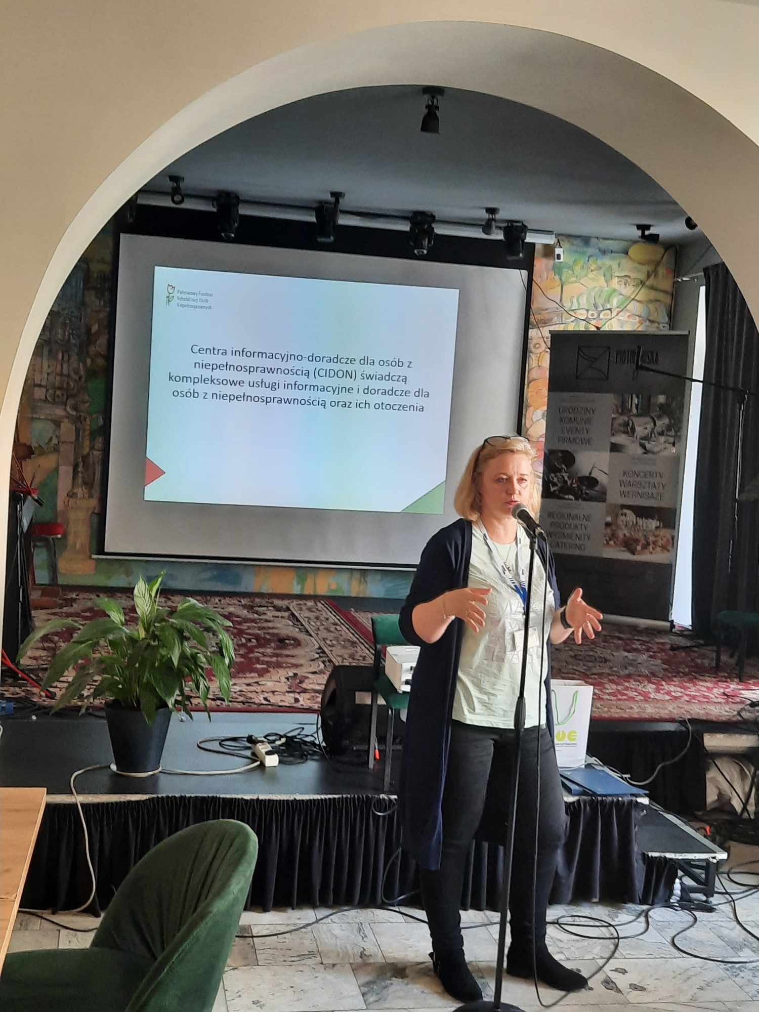 Podczas konferencji prelekcję na temat „PFRON – Działania na rzecz osób z niepełnosprawnościami” poprowadziła Ewa Kaczmarkiewicz, ekspertka z Łódzkiego Oddziału Państwowego Funduszu Rehabilitacji Osób Niepełnosprawnych.