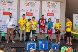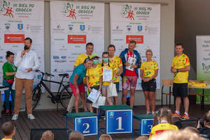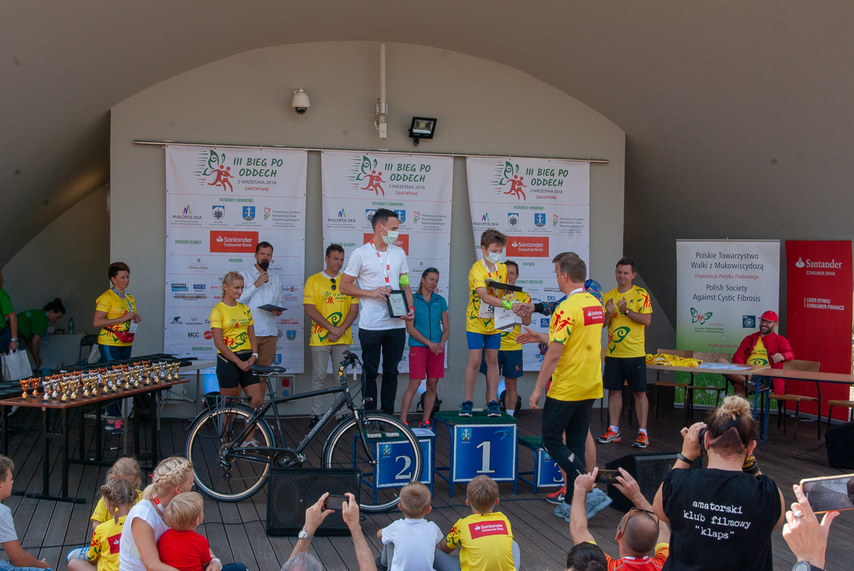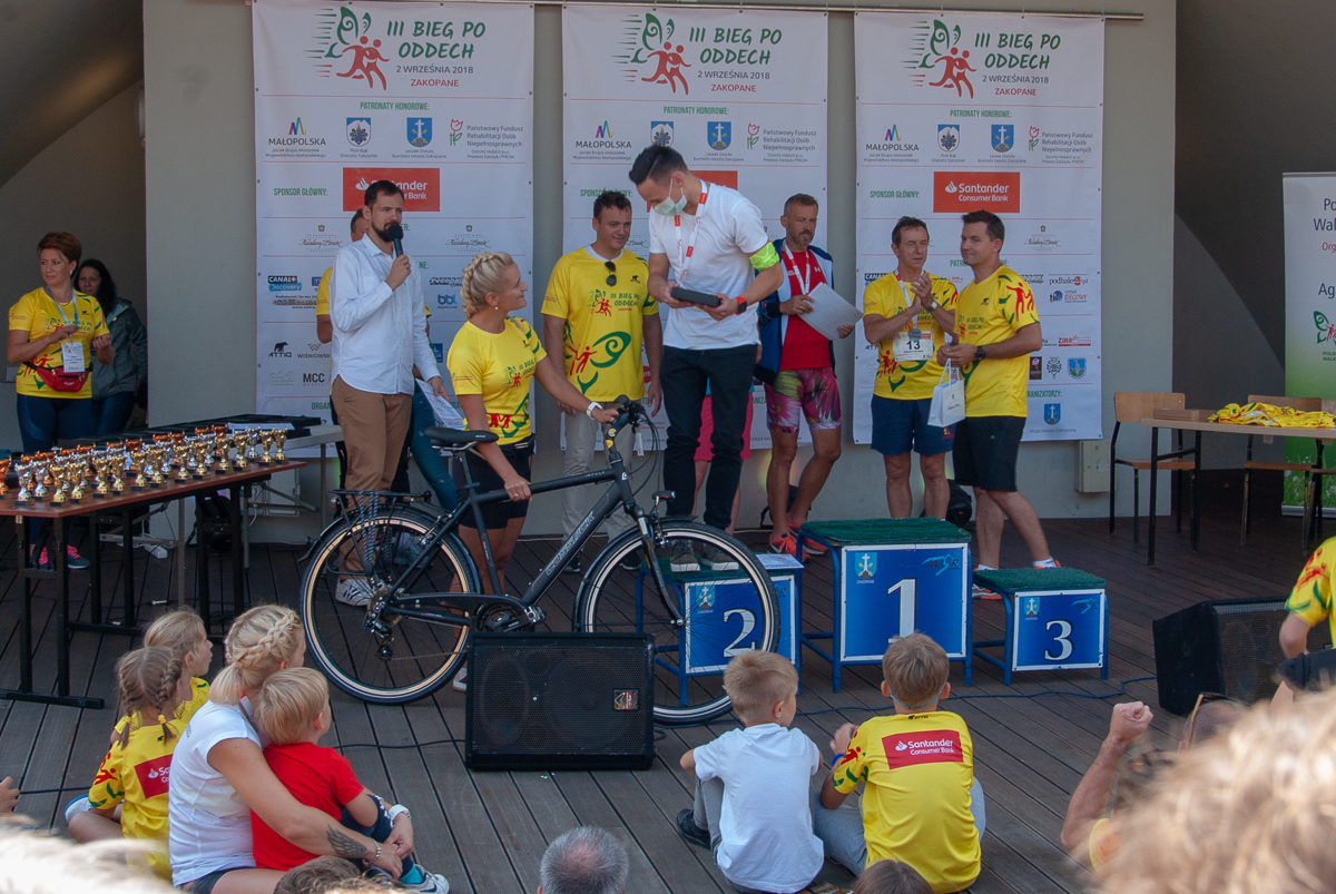 Rower - nagrodę za II miejsce w kategorii PTWM, ufundowaną przez PFRON otrzymał Marcin Małek. W imieniu dyrektor Marty Mordarskiej nagrodę wręczyła Joanna Kołdras, która również reprezentowała Małopolski Oddział PFRON podczas biegu.
