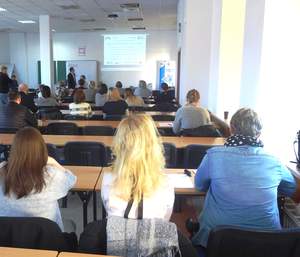 Pracownik Kujawsko-Pomorskiego Oddziału PFRON na przykładach, krok po kroku, pokazywał zgromadzonym jak wypełnić wnioski i załączniki oraz jak przejść przez system, składając dokumenty w formie elektronicznej.
