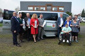 Symbolicznie klucze do pojazdów odebrała pani Małgorzata Kwiring – Pondel - dyrektor Środowiskowego Domu Samopomocy w Kluczborku z Filią w Kuniowie wraz ze swoimi pracownikami i podopiecznymi PCPR. Busy przekazali pan Jarosław Kielar - Burmistrz Miasta Kluczborka, pan Łukasz Żmuda - Dyrektor Oddziału Opolskiego Państwowego Funduszu Rehabilitacji Osób Niepełnosprawnych oraz pani Elżbieta Pietrzykowska - dyrektor Administracji Oświaty w Kluczborku.