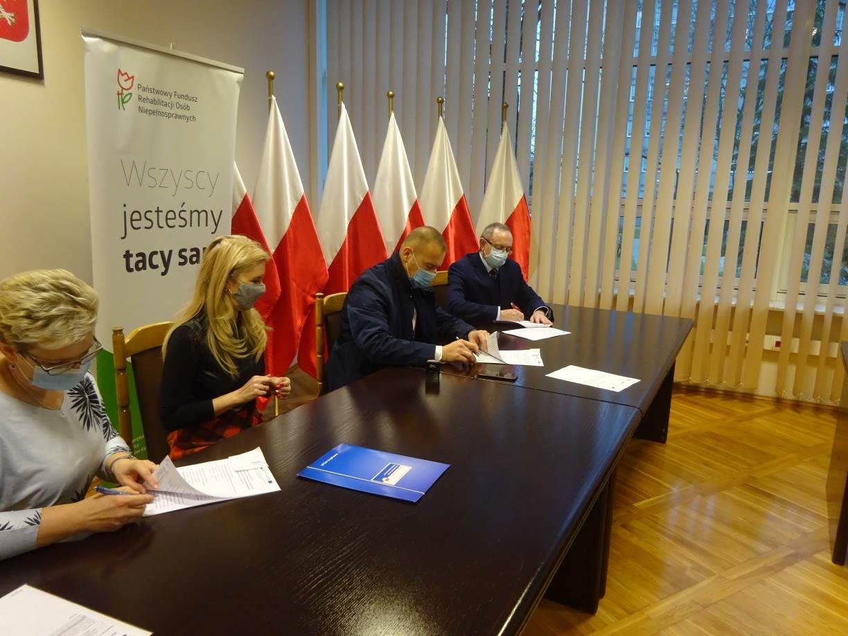 Obie umowy zostały zatwierdzone przez dyrektora Oddziału Świętokrzyskiego PFRON - Andrzeja Michalskiego oraz eksperta Agnieszkę Matałowską. W podpisaniu uczestniczył również senator RP - Krzysztof Słoń.
