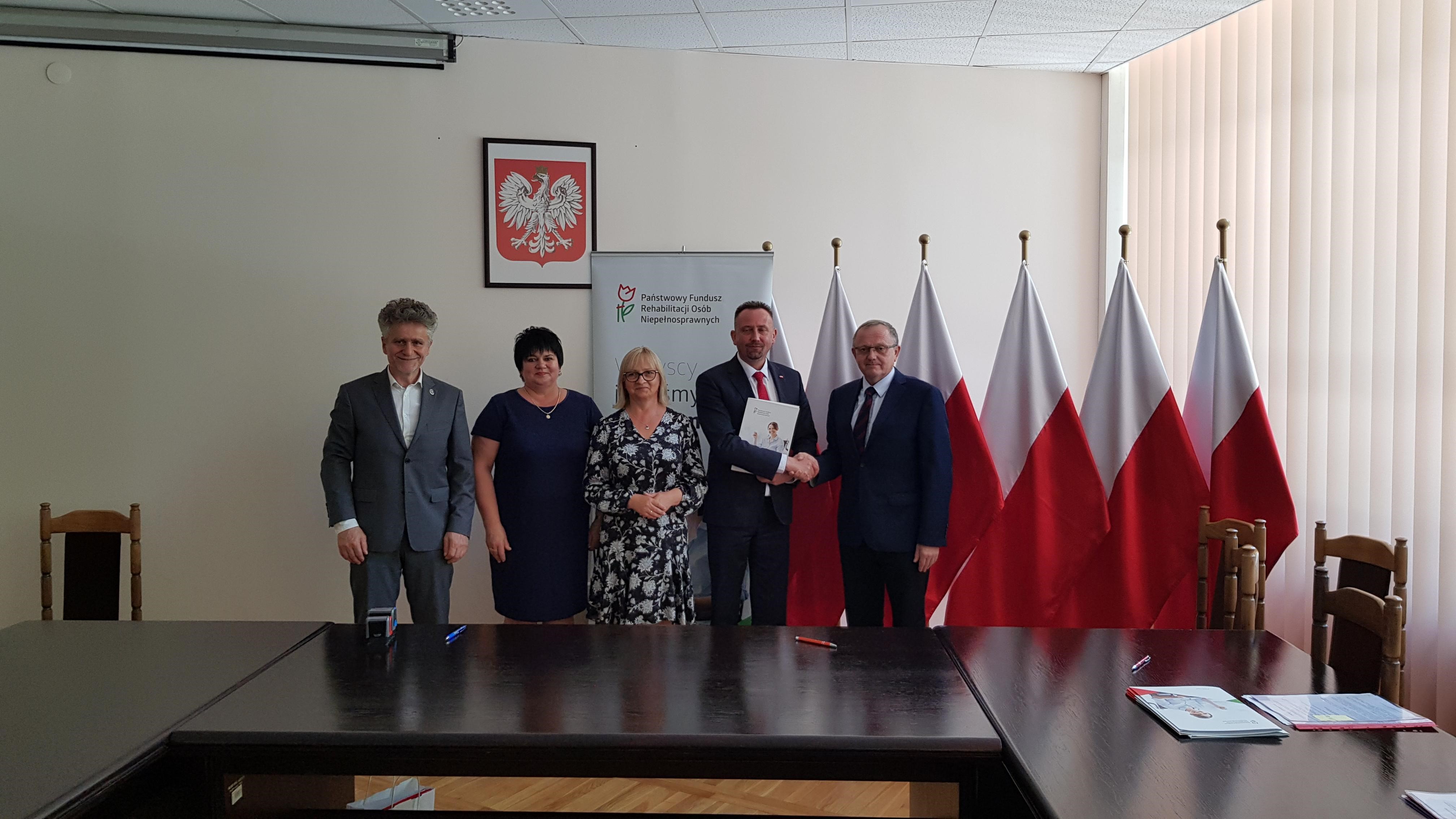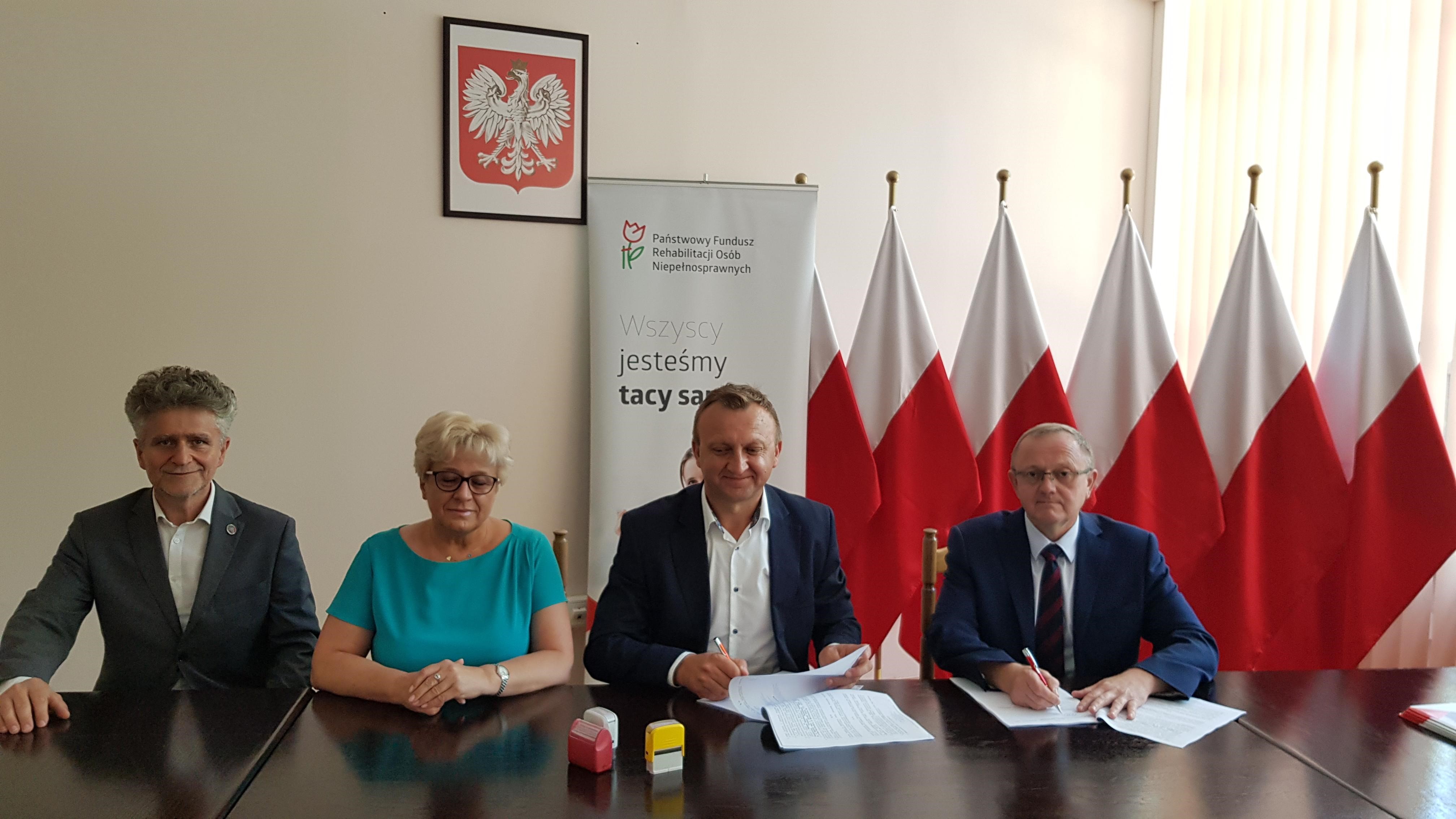 W dniu dzisiejszym w siedzibie Świętokrzyskiego Urzędu Wojewódzkiego w Kielcach Andrzej Michalski dyrektor Oddziału Świętokrzyskiego Państwowego Funduszu Rehabilitacji Osób Niepełnosprawnych podpisał kolejne umowy w ramach „Programu wyrównywania różnic między regionami” z przedstawicielami samorządu terytorialnego, które złożyły wnioski i otrzymały środki finansowe w wysokości: Kielce - 216 512, 80 zł powiat sandomierski – 82 000 zł powiat jędrzejowski – 189 069, 36 zł powiat pińczowski – 74 940 zł powiat Skarżysko – Kamienna - 295 644,07zł W podpisaniu umów uczestniczył Krzysztof Słoń- senator RP.