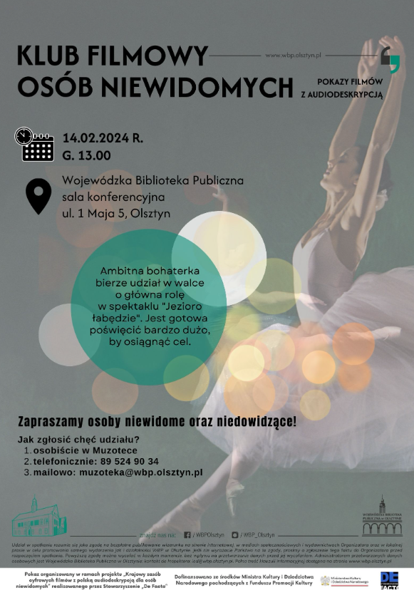 Uprzejmie informujemy, że Wojewódzka Biblioteka Publiczna w Olsztynie organizuje pokazy filmów z audiodeskrypcją dla osób niewidomych oraz niedowidzących.