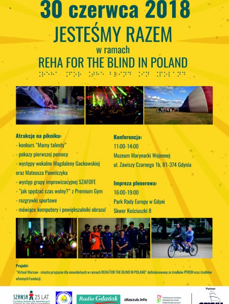 W imieniu władz, pracowników oraz wolontariuszy Fundacji Szansa dla Niewidomych, serdecznie zapraszamy na pomorską konferencję organizowaną w ramach XVI EDYCJI międzynarodowej konferencji Virtual Warsaw – miasto przyjazne niewidomym podczas REHA FOR THE BLIND IN POLAND, która odbędzie się w Sobotę 30 czerwca 2018 r. w Muzeum Marynarki Wojennej przy ul. Zawiszy Czarnego 1B w Gdyni.