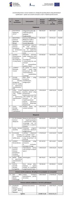 W sumie podpisano umowy na 24 projekty związane z wydłużaniem aktywności zawodowej w zakresie profilaktyki raka jelita grubego, zwalczaniem chorób cywilizacyjnych oraz dostępem do wysokiej jakości usług zdrowotnych i społecznych.