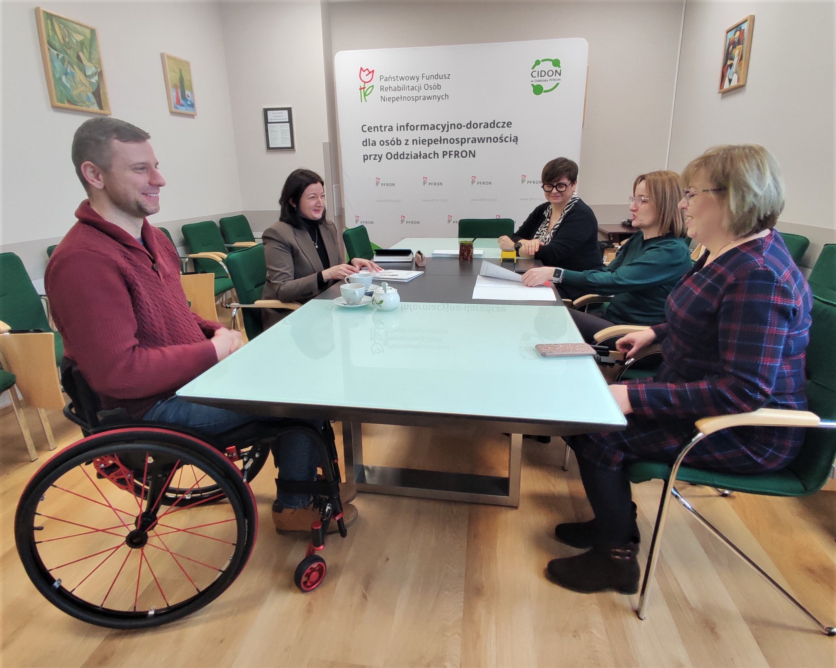 W spotkaniu w siedzibie Oddziału w dniu 2 lutego br. uczestniczyli: Marta Mordarska - dyrektor Małopolskiego Oddziału PFRON, Anna Orzechowska - prezes Fundacji "Znowu w Biegu", Łukasz Kosiara - kierownik merytoryczny OWiT oraz przedstawiciele Oddziału. Zawarte porozumienie dotyczy wymiany doświadczeń, wiedzy, informacji, danych i wspólnego korzystania z System Obsługi Wsparcia finansowanego ze środków PFRON.