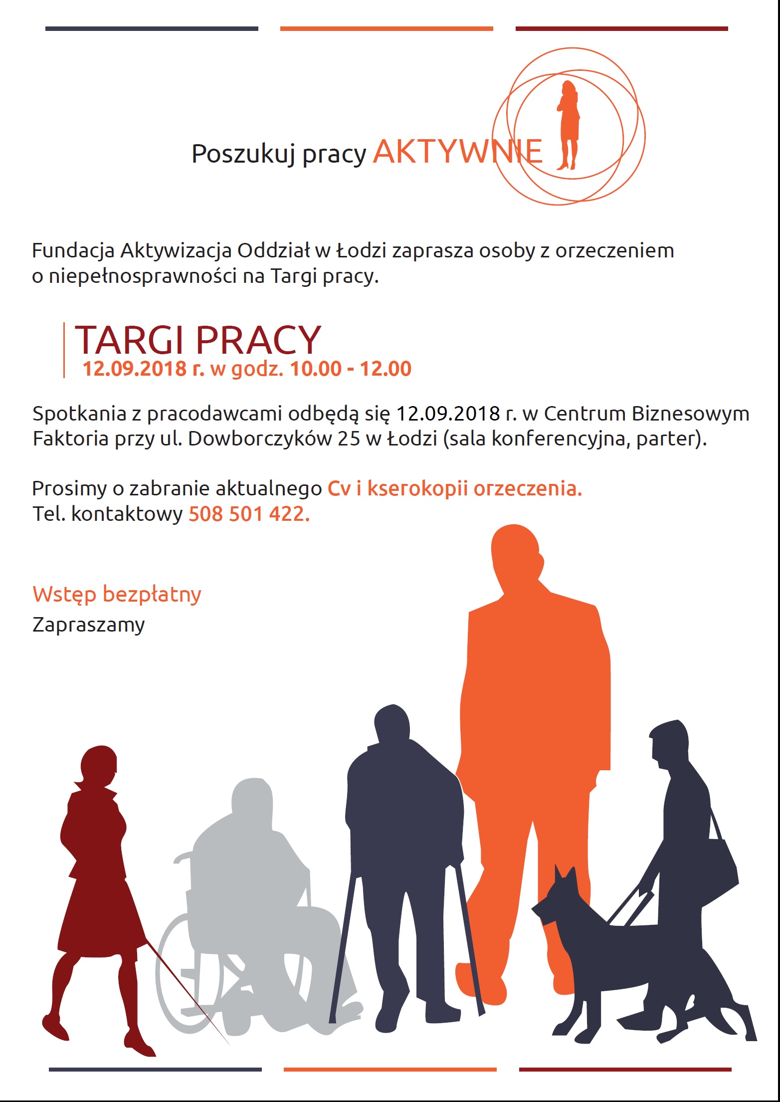 Uczestników prosimy o zabranie aktualnego CV i kserokopii orzeczenia.