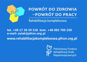 Zainteresowanych udziałem zapraszamy do kontaktu z pracownikiem naszego Oddziału - Agnieszką Ulak - 17 28 39 318 oraz 882 789 258, e-mail: aulak@pfron.org.pl