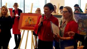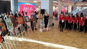 Prace plastyczne osób niepełnosprawnych w galerii handlowej przy poznańskim dworcu kolejowym