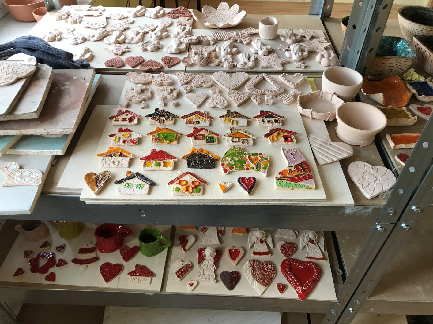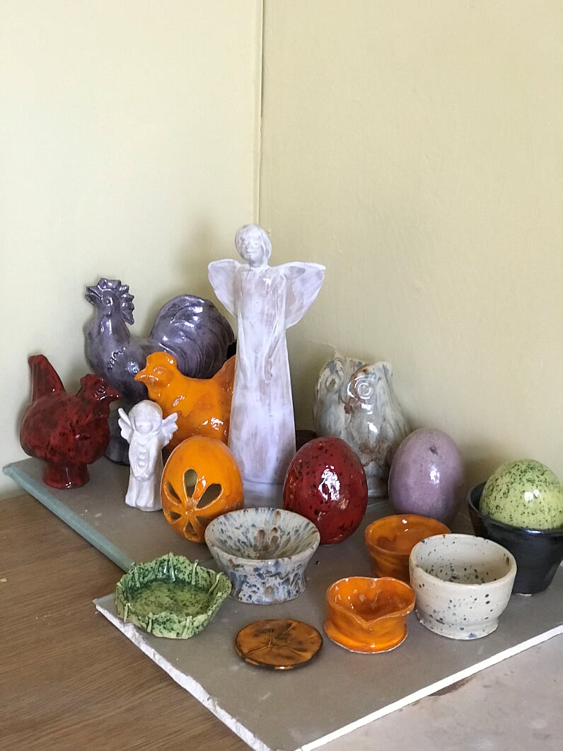 W pracowni powstają gliniane naczynia, figurki, świeczniki, breloczki, zawieszki, aniołki i różnego rodzaju ozdoby. Dopuszczana jest niczym niepohamowana inwencja twórcza. Ogranicza nas tylko nasza wyobraźnia.