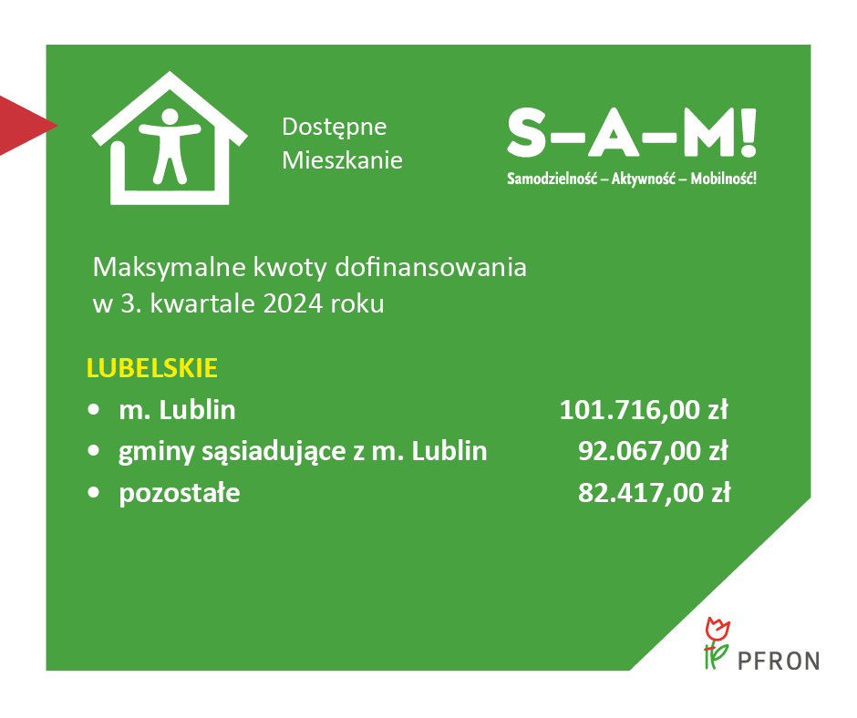 Dofinansowanie umożliwia zmianę miejsca zamieszkania na lokal pozbawiony barier architektonicznych, co pozwala na samodzielne opuszczenie budynku. Wysokość dofinansowania zależy od lokalizacji nowego mieszkania i stanowi różnicę między ceną mieszkania nabywanego i sprzedawanego. Wysokości maksymalnej kwoty dofinansowania w 3 kwartale 2024 roku, dostępnej w jednostkach samorządu terytorialnego: