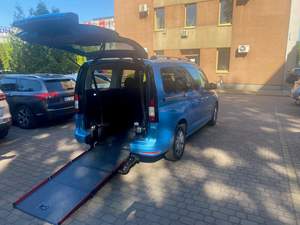 Samochód jest technicznie dostosowany do przewozu pasażera z niepełnoprawnością uniemożliwiającą poruszanie się bez użycia wózka inwalidzkiego w sposób, który umożliwia zajęcie miejsca pasażera bez konieczności przesiadania się z wózka inwalidzkiego.