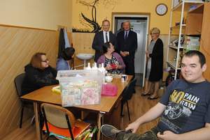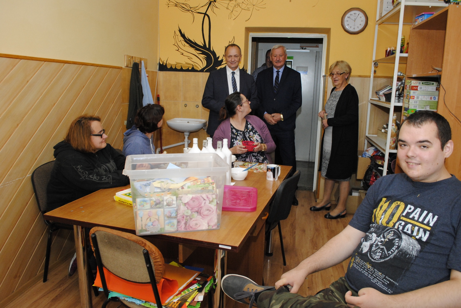 Zawarcie umów było okazją do spotkania Dyrektora Oddziału Podkarpackiego PFRON z uczestnikami Warsztatu i obejrzenia poszczególnych pracowni.