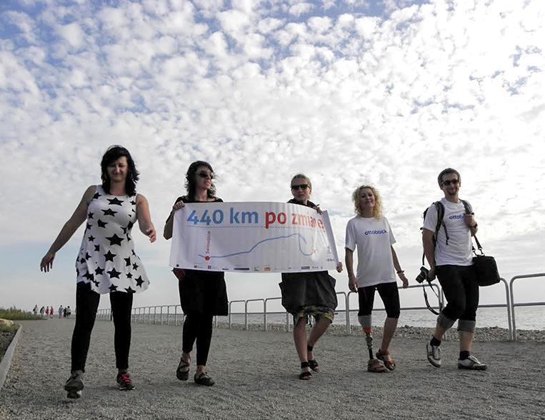 „440 km po zmianę” to podróż, która po raz pierwszy odbyła się w 2012 roku. Dzięki przeprowadzanej akcji Fundacja pomaga corocznie jednej kobiecie spełnić marzenie o samodzielnym poruszaniu się i aktywnym życiu poprzez przekazanie protezy lub wózka. Zapewnione przy tym jest również wsparcie psychologiczne.