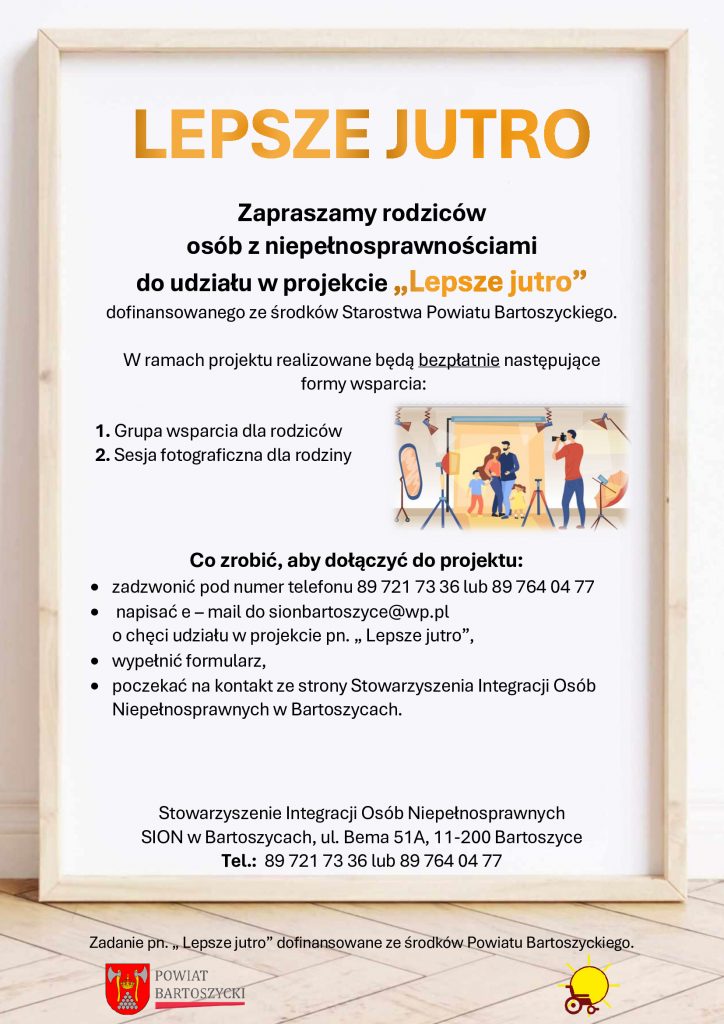 Projekt „Lepsze jutro” dofinansowany jest ze środków Powiatu Bartoszyckiego.