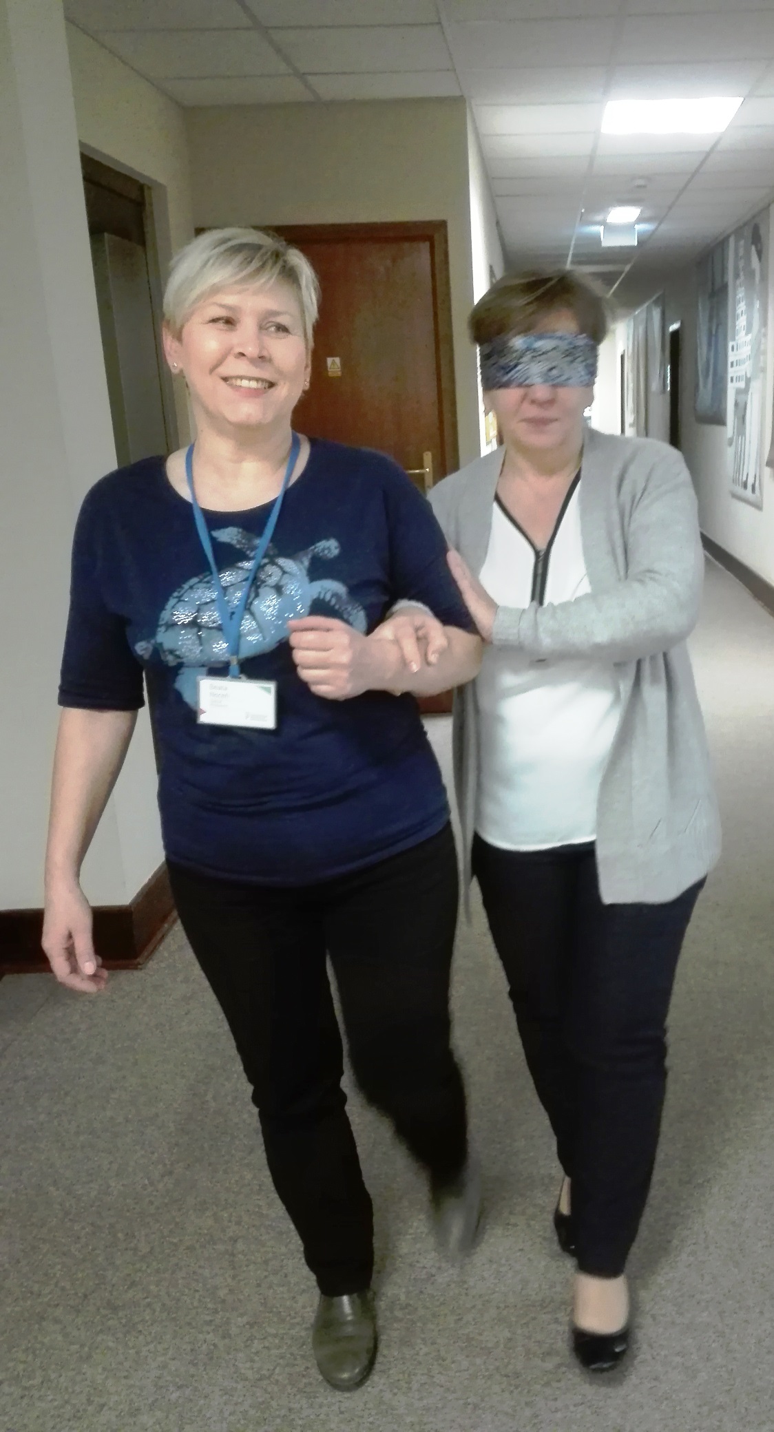 W trakcie spotkania omówiliśmy oraz zapoznaliśmy się z modelami niepełnosprawności, poprawną etykietą językową, która powinna być stosowana w stosunku do osób z różnymi niepełnosprawnościami. Utrwaliliśmy również zasady efektywnego kontaktu z osobami niewidomymi i niesłyszącymi.