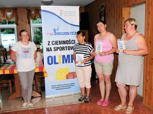 Zwyciężczynie grupy B1 - niewidome kobiety - oraz przedstawicielka organizatora zawodów