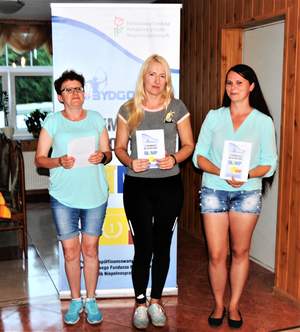 Pokaż zdjęcie Zwyciężczynie grupy B1 - niewidome kobiety - oraz przedstawicielka organizatora zawodów