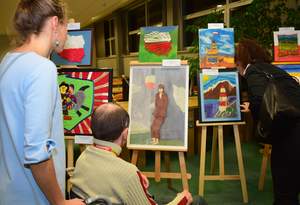 Prorektor podkreślił, że Akademia Techniczno-Humanistyczna realizuje misję społecznej odpowiedzialności uczelni wobec osób z niepełnosprawnościami m.in. poprzez likwidowanie barier architektonicznych na terenie kampusu, jak również doposażenie pomieszczeń w specjalistyczny sprzęt. Podsumowując swoje wystąpienie prof. Ślusarczyk wyraził życzenie, abyśmy nie rezygnowali we wzajemnych relacjach z zaciekawienia światem, inną osobą, a nade wszystko pielęgnowali w sobie zmysł udziału w społeczności, tak by być otwartym na drugiego człowieka. Potrzeba zrozumienia została też zaakcentowana w wypowiedziach goszczących na otwarciu ekspozycji autorów prac – uczestników Warsztatów Terapii Zajęciowej z Bielska-Białej i Czechowic-Dziedzic. W swoich wystąpieniach wyrażali ogromną radość z tego, że prace są pokazywane, że mogą się dzielić swoją sztuką i postrzeganiem świata z innymi. Jedna z laureatek konkursu nie kryjąc wzruszenia pochwaliła się otrzymaną nagrodą, która była spełnieniem jej marzeń.