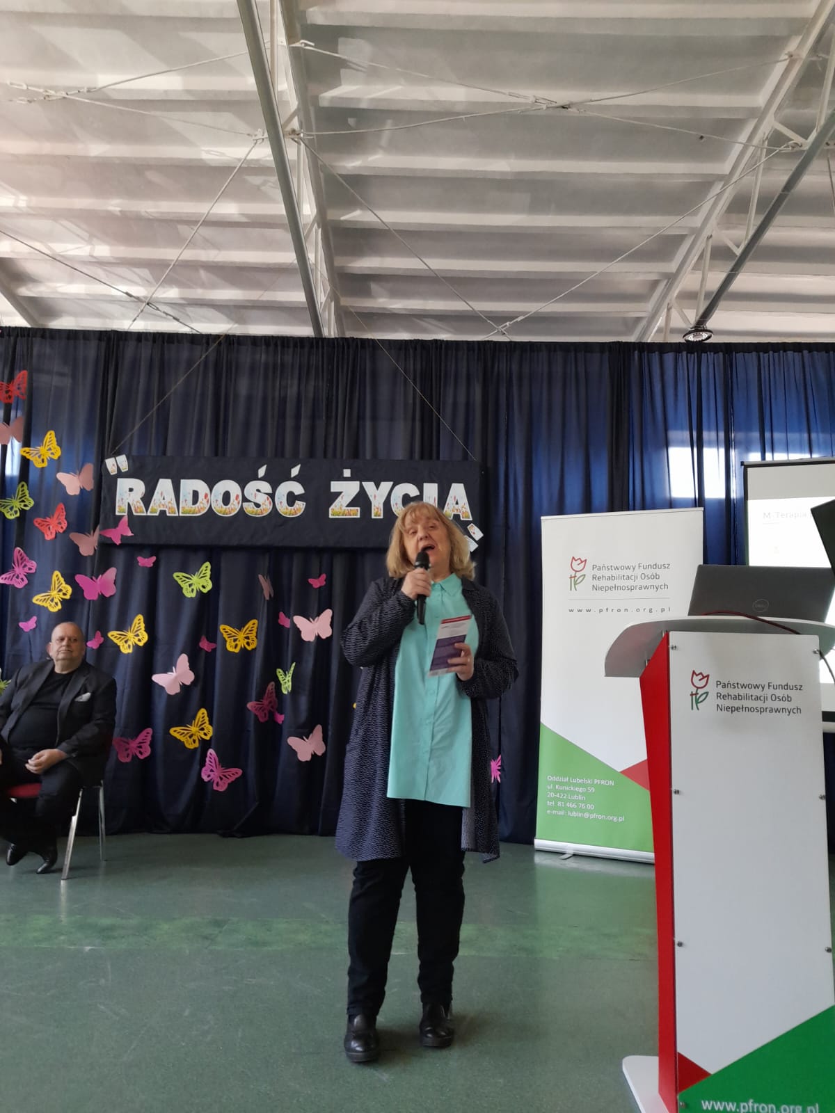 Podczas naszej konferencji zaszczyciła nas swoją obecnością Pani Alicja Jankiewicz – Prezeska Honorowa Lubelskiego Forum Organizacji Osób Niepełnosprawnych – Sejmik Wojewódzki. Pani Jankiewicz aktywnie promowała ogólnopolską akcję społeczną „Przewijamy Polskę”, której celem jest zwiększenie dostępności toalet z przewijakami dla osób z niepełnosprawnościami.