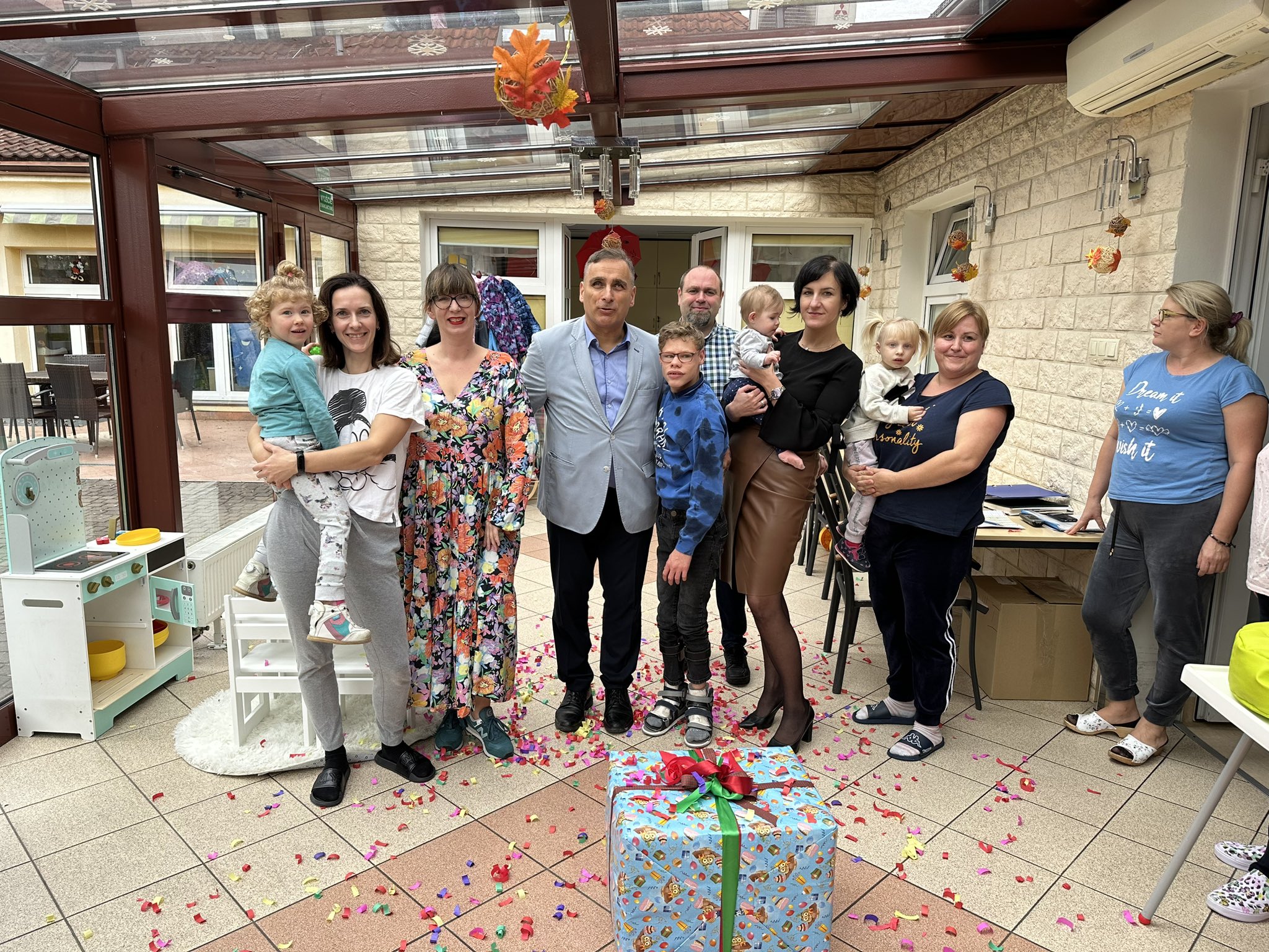 Celem wizyty było wręczenie małym aktorom nagrody specjalnej Prezesa Zarządu PFRON zdobytej przez aktorów z grupy teatralnej „Korczakowskie Skrzaty” w ramach XVIII Międzynarodowego Przeglądu Teatrów Wspaniałych, który odbył się po raz kolejny w Tczewie. Podopieczni Domu otrzymali m.in.: plecaki, głośnik audio oraz zestawy plastyczne w tym przybory do malowania.