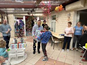 Przekazaniu wielkiego prezentu towarzyszyły uściski, okrzyki radości i huczne konfetti. Nagrodę odebrał osobiście mały aktor - Norbert. Była to dla nas wszystkich uczestników bardzo radosna i wzruszająca chwila. Gratulujemy wszystkim podopiecznym domu zacięcia aktorskiego i czekamy na dalsze spektakle.