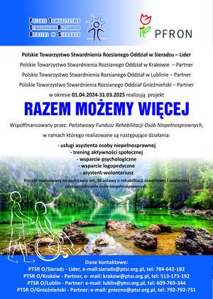 Należy zaznaczyć, że Polskie Towarzystwo Stwardnienia Rozsianego Oddział w Sieradzu jest liderem tego projektu i wspiera nie tylko swoich członków, których obecnie liczy 206 osób, ale również członków Polskiego Towarzystwa Stwardnienia Rozsianego Oddział Gnieźnieński, Oddział w Krakowie i Lublinie, którzy są partnerami.