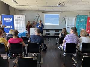 Podczas konferencji dyrektor Oddziału Pomorskiego PFRON omówił różne formy wsparcia dla osób niewidomych i niedowidzących w ramach programów i zadań ustawowych realizowanych z środków PFRON. Poruszył również temat szeroko pojętej dostępności, podkreślając działania, które są podejmowane obecnie w województwie pomorskim na rzecz osób z różnymi niepełnosprawnościami.