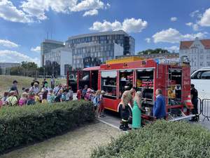 Spotkanie rozpoczęło się od pokazu policji i straży pożarnej, która w plenerze zaprezentowała swój sprzęt ratowniczy i omówiła podstawowe zasady zachowania osób niepełnosprawnych w sytuacjach zagrażających zdrowiu lub życiu.