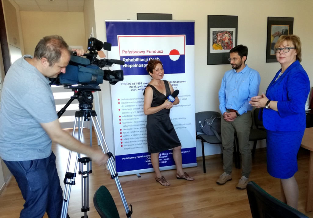 W siedzibie Małopolskiego Oddziału PFRON nagrany został materiał dotyczący książki „Akademia Orłów II” Iwony Kamieńskiej. Z Marią Kudroń, reporterką TVP3 Kraków rozmawiała Marta Mordarska, dyrektor Oddziału Małopolskiego PFRON oraz Marcin Kałużny, prezes Stowarzyszenia Sursum Corda.