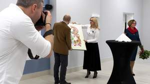 Wśród zaproszonych gości nie zabrakło Dyrektor Kujawsko-Pomorskiego Oddziału PFRON - Aleksandry Gierej, która po uroczystości udzieliła krótkiego wywiadu dla TVP3 Bydgoszcz.