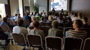 Aneta Zębala - specjalista ds. wsparcia i współpracy z pracodawcami Oddziału Małopolskiego przedstawiła formy wsparcia ze środków PFRON samozatrudnienia i zatrudnienia osób z niepełnosprawnościami, opowiedziała o zaletach samozatrudnienia oraz o przywilejach pracowników niepełnosprawnych. Osoby bezrobotne obecne na spotkaniu zachęcane były do wykorzystania aktualnej sytuacji na rynku pracy i podjęcia aktywności zawodowej. Obecny przedstawiciel Zakładu Ubezpieczeń Społecznych, podczas prelekcji pn. „ABC nowego przedsiębiorcy”, powiedział o obowiązkach osoby prowadzącej działalność gospodarczą względem ZUS, uldze na start, e-składce, ograniczeniach dochodowych w stosunku do utraty uprawnień do renty, ubezpieczanie osób współpracujących.