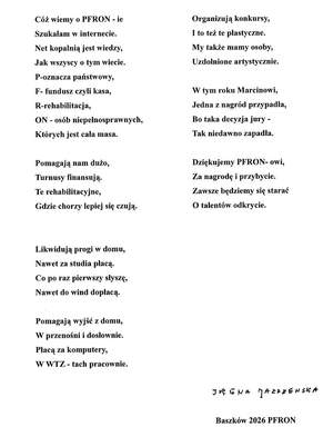 Poniżej prezentujemy wiersz mieszkanki Domu Pomocy Społecznej w Baszkowie: