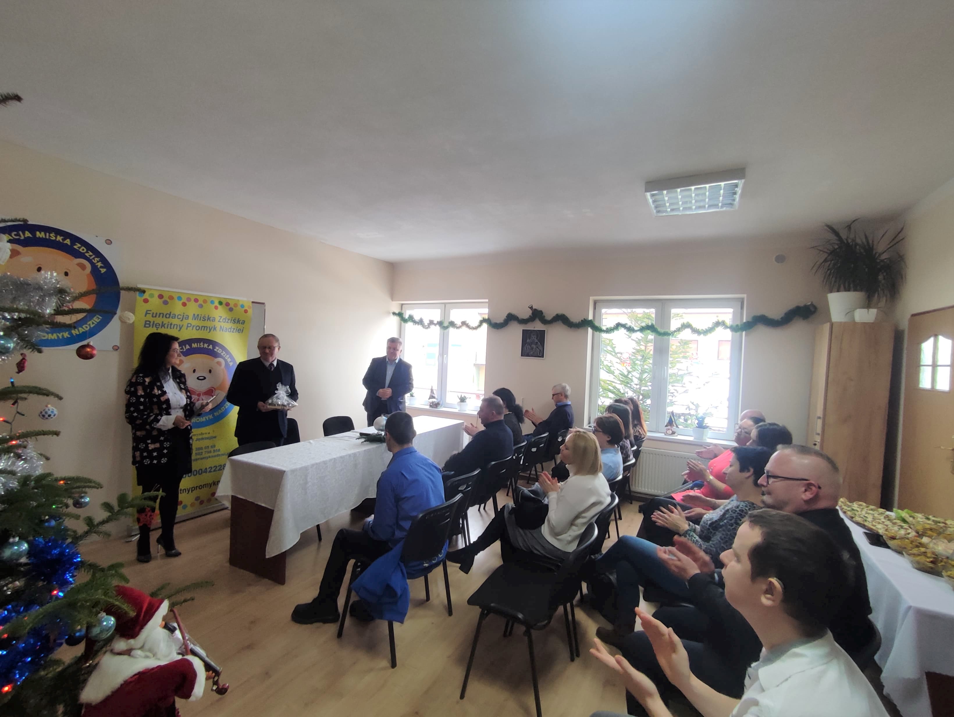 13 grudnia br. w siedzibie Fundacji Miśka Zdziśka w Jędrzejowie odbyło się podsumowanie projektu „ Sięgamy po sukces – Aktywni mimo barier” . Celem konferencji było zaprezentowanie efektów działań projektowych, dzięki którym ponad 20 osób z niepełnosprawnością po otrzymaniu kompleksowego wsparcia tj. doradcy zawodowego, psychologa, terapeuty, szkolenia jest w trakcie realizacji staży zawodowych z możliwością dalszego zatrudnienia. Projekt ciągle trwa i kolejne osoby, dzięki środkom pozyskanym z Państwowego Funduszu Rehabilitacji Osób Niepełnosprawnych będą mogły podjąć aktywizacje zawodową i społeczną. W konferencji uczestniczył dyrektor Oddziału Świętokrzyskiego PFRON Andrzej Michalski, prezes Fundacji Dariusz Lisowski, dyrektor biura fundacji Malwina Sobczyk, pracownicy fundacji, uczestnicy projektu oraz zaproszeni pracodawcy. Dyrektor Andrzej Michalski przybliżył zebranym założenia obecnie realizowanych programów przez Fundusz m.in. „Samodzielność-Aktywność-Mobilność!” Mieszkanie dla absolwenta i Dostępne mieszkanie. Zachęcał do zapoznania się ze szczegółami programu i informowania o nim potencjalnych beneficjentów.