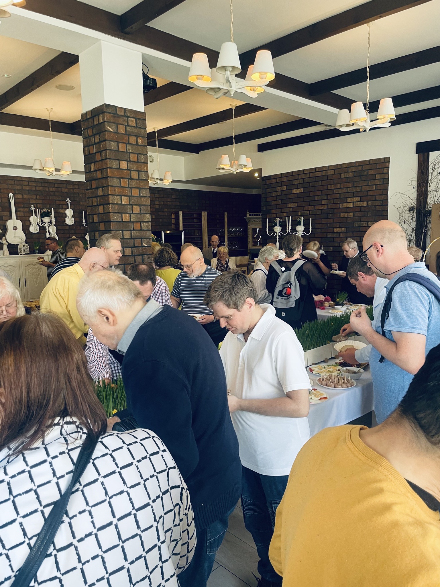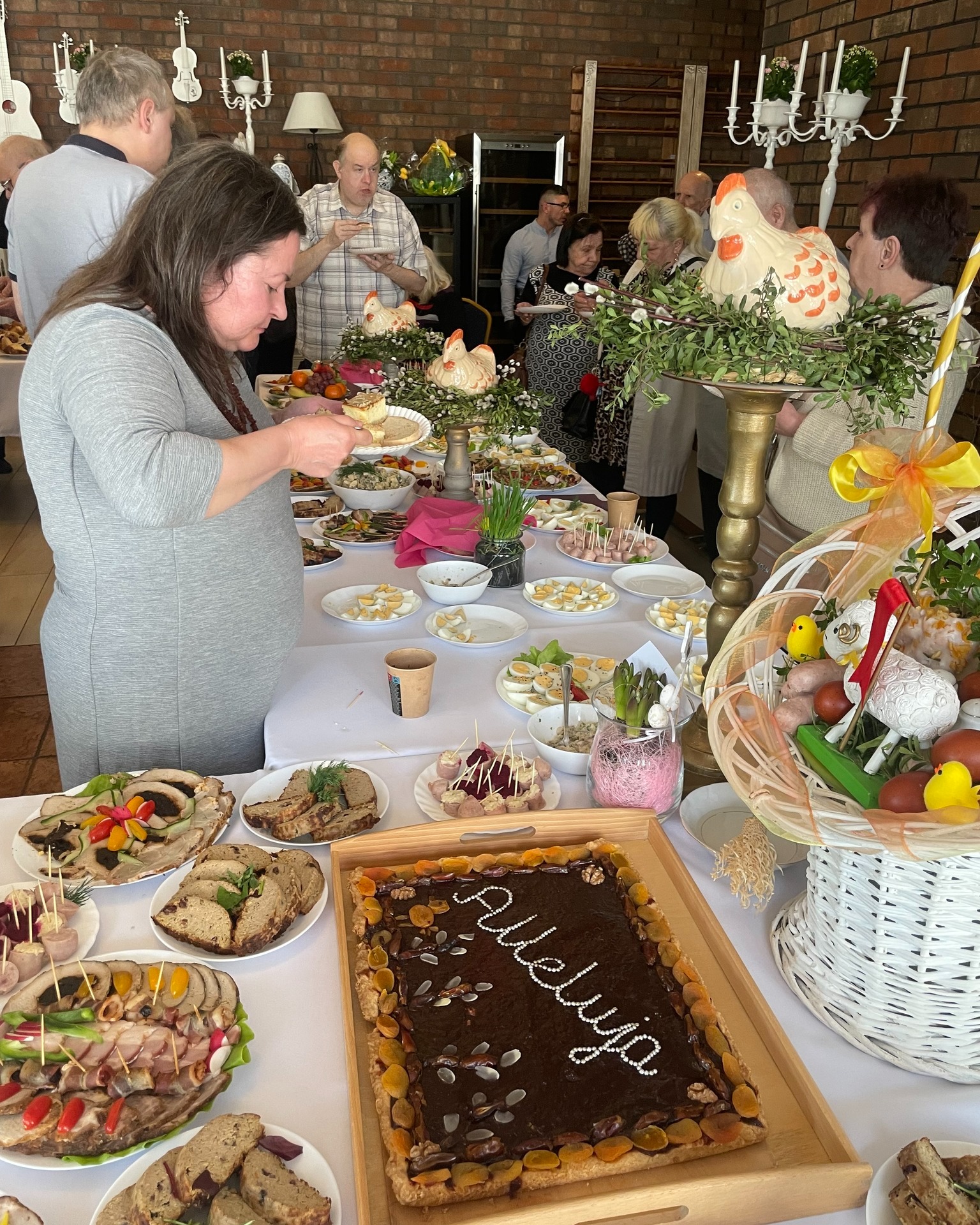 Wszyscy udali się na wielkanocny poczęstunek, który przygotował Zakład Aktywności Zawodowej „Zdrowa Kuchnia” TPN oraz Środowiskowy Dom Samopomocy „Sami Swoi”. Na stole nie zabrakło tradycyjnych świątecznych specjałów, takich jak: żurek, biała kiełbasa, jajka, sałatki czy babka. Potrawy smakowały jak zawsze wybornie.
