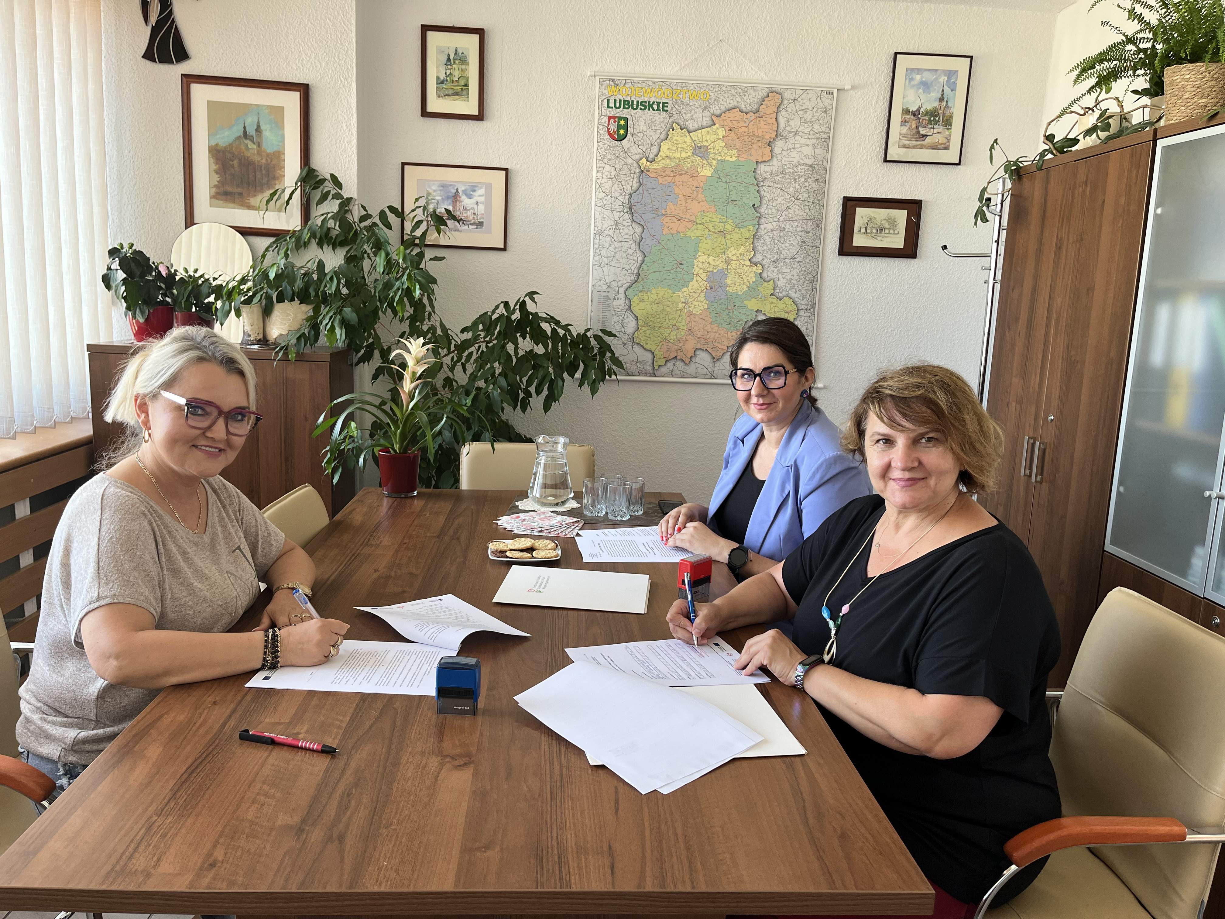 Ze strony PFRON Porozumienie podpisała Dyrektor Oddziału Lubuskiego PFRON Elżbieta Miernik-Krukurka, a ze strony Urzędu Marszałkowskiego Dyrektor Regionalnego Ośrodka Polityki Społecznej w Zielonej Górze (ROPS) Agnieszka Krzaczkowska. W spotkaniu brała udział również Kierownik Wydziału ds. rehabilitacji zawodowej i społecznej w ROPS Magda Mierzejewska.