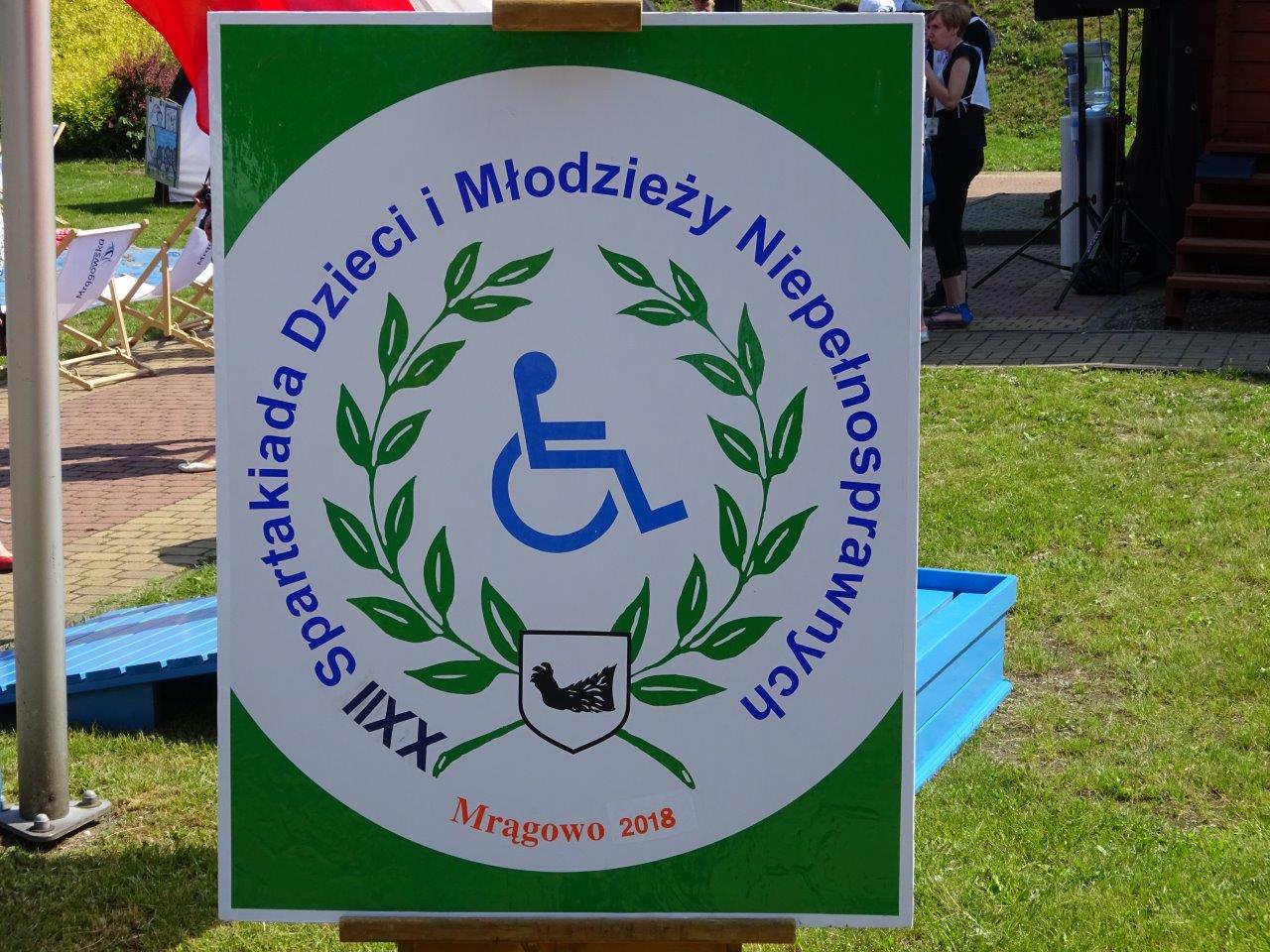 W pięknie położonym w centrum Mrągowa Parku Unii Europejskiej 2 czerwca 2018r odbyła się XXII Spartakiada Dzieci i Młodzieży Niepełnosprawnych. Było zapalanie znicza, przysięga olimpijska, przy dźwiękach orkiestry wciągnięcie na maszt flagi narodowej i flagi Unii. Oficjalnego otwarcia dokonały Burmistrz Mrągowa Otolia Siemienic i wicestarosta Magdalena Lewkowicz. Udanych zawodów życzył sportowcom wiceprzewodniczący Sejmiku Warmińsko-Mazurskiego Julian Osiecki. Zawodnicy rywalizowali w wielu konkurencjach sportowych. Niezależnie od zawodów odbywało się wspólne czytanie po którym na estradzie zaprezentowali się artyści niepełnosprawni. Można było sprawdzić swoje umiejętności jako strażak przy gaszeniu pozorowanego pożaru oraz przekonać się na stoisku Policji po założeniu specjalnych gogli, jak widzi się po spożyciu alkoholu. Na miłośników motoryzacji czekali członkowie Stowarzyszenia Miłośników Motocykli Zabytkowych KRUK oferując krótkie przejażdżki motocyklami. Utraconą energię można było uzupełnić świetną grochówką przygotowaną przez mrągowskich strażaków.