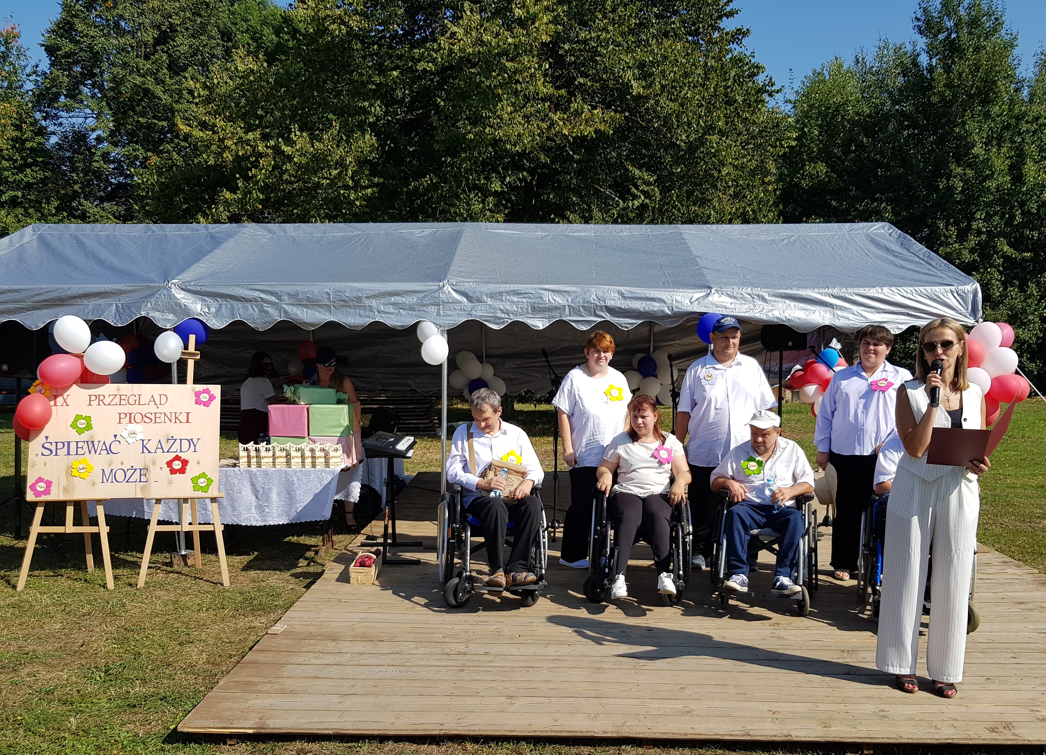 IX Przegląd Piosenki „Śpiewać każdy może..” odbył się 29 sierpnia br. w Warsztacie Terapii Zawodowej w Sędku. Przegląd odbył się w plenerze przed budynkiem placówki, artyści z siedmiu ośrodków z terenu województwa kieleckiego zaprezentowali swoje umiejętności. Wystąpili przedstawiciele placówek WTZ z: Belna, Zgórska, Osin, Gnojna, Kałkowa-Godowa, Sędka oraz DPS Łagiewniki. W tym roku prezentowali oni piosenki” z imieniem”. Wszystkie występy stały na bardzo wysokim poziomie. Jury w skład, którego wchodzili przedstawiciele wszystkich warsztatów jednogłośnie podjęli decyzję że wszyscy uczestnicy zajęli I miejsce. Każda placówka za występ otrzymała nagrodę rzeczową oraz statuetkę i dyplom. Poza Przeglądem dodatkowo na scenie zaprezentowali się również seniorzy z dziennego Domu Senior+.