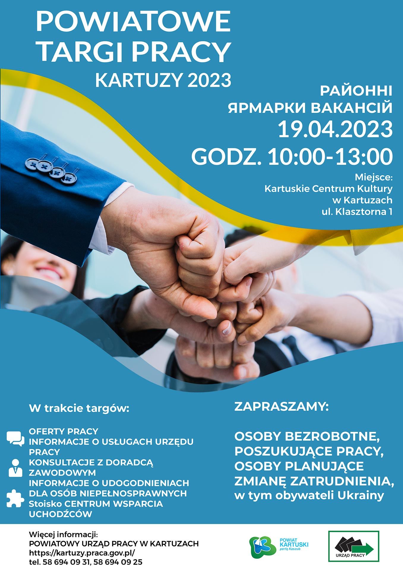 Zapraszamy wszystkich zainteresowanych 19 kwietnia 2023 r. w godz. 10.00-13.00 do Kartuskiego Centrum Kultury w Kartuzach, ul. Klasztorna 1.