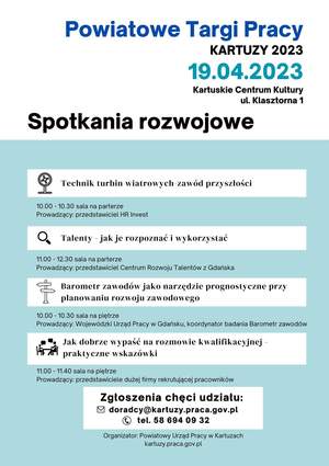 19 kwietnia 2023 r. bierzemy udział w Powiatowych Targach Pracy w Kartuzach.