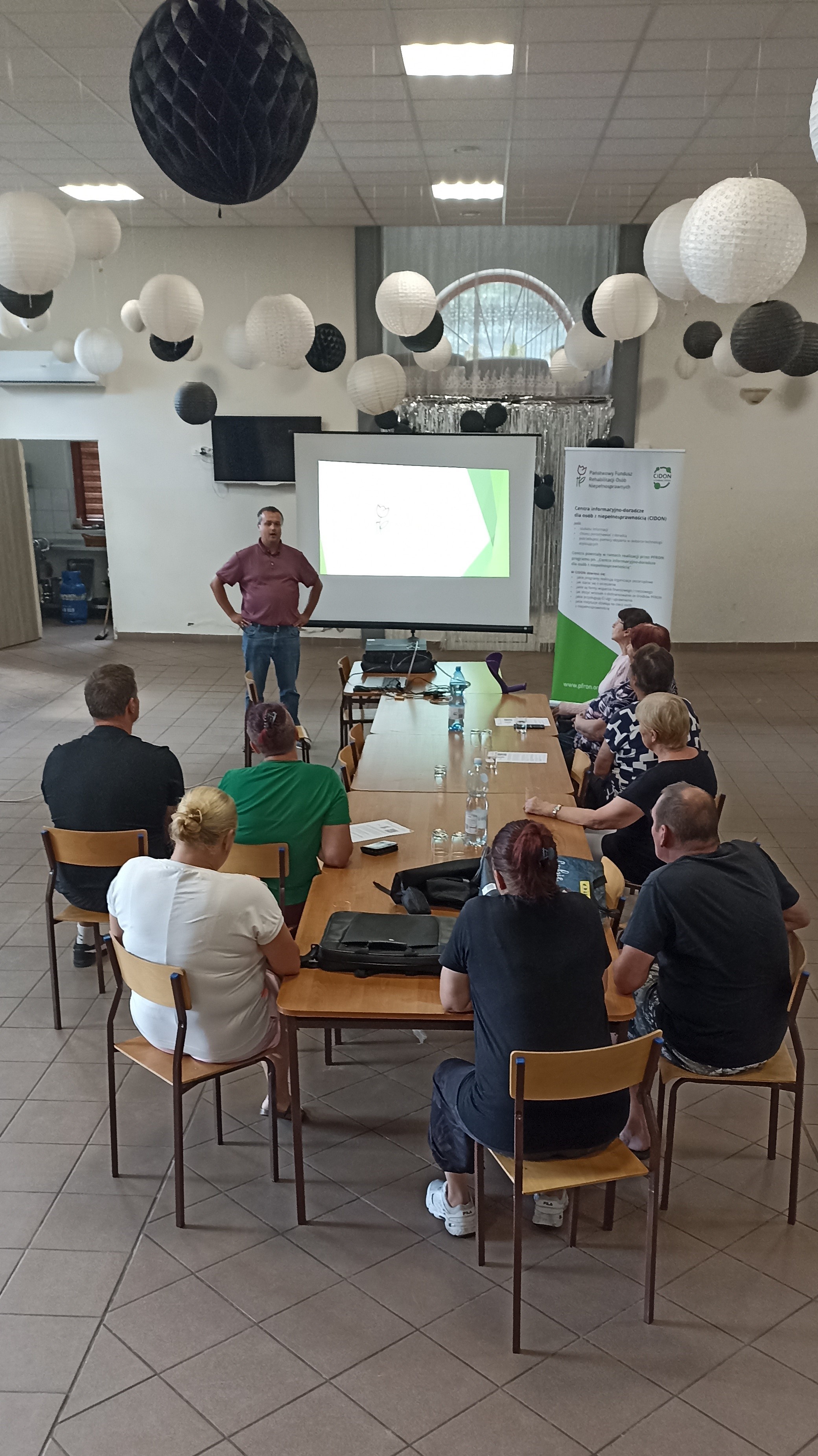 Specjalista ds. promocji i informacji Piotr Natkański przekazał najważniejsze informacje dotyczące możliwości PFRON dla osób z niepełnosprawnościami.