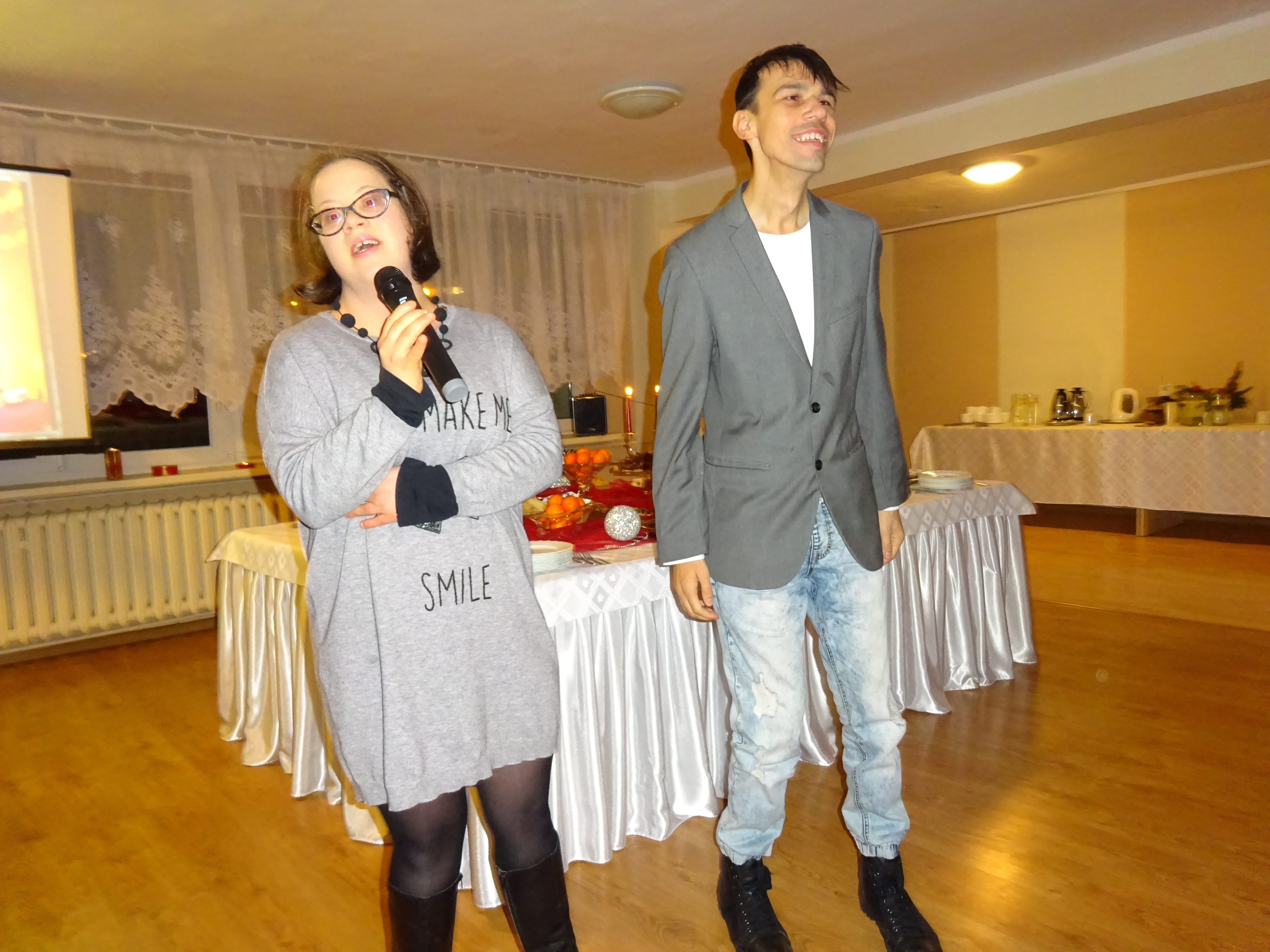Uczestnicy Klubu Aktywności Społecznej ”Akademia Umiejętności” spotkali się na okolicznościowej wieczornicy w siedzibie SOSW im. Kornela Makuszyńskiego w Olsztynie. Członkami klubu są absolwenci Ośrodka uczestniczący także w projekcie pn. „Zespół Aktywności Społecznej AKADEMIA UMIEJĘTNOŚCI” finansowanym ze środków Państwowego Funduszu Rehabilitacji Osób Niepełnosprawnych w ramach zadań zleconych. Na spotkanie, które odbyło się 7 grudnia 2017 r. zaproszono opiekunów i dyrekcję SOSW, a także przedstawicieli Oddziału Warmińsko-Mazurskiego Państwowego Funduszu Rehabilitacji Osób Niepełnosprawnych. Program wieczornicy przygotowany został przez członków klubu, a dwaj z nich pełnili funkcję konferansjerów. Spotkanie rozpoczęło się krótkim recitalem kolęd i wręczeniem słodkich prezentów przygotowanych przez członków klubu. Był czas na wystąpienia absolwentów Ośrodka, którzy dzielili się swoją wiedzą i uwagami na temat pracy, którą podjęli po ukończeniu szkoły. Po części oficjalnej był czas na indywidualne rozmowy przy kawie i słodyczach przygotowanych przez pracownię gastronomiczną Ośrodka.