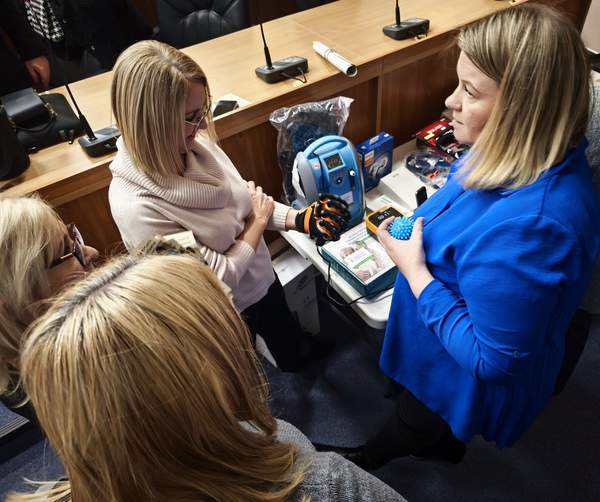 Podczas spotkania zaprezentowano specjalistyczny sprzęt oraz nowoczesne technologie wspierające osoby z niepełnosprawnością, pochodzące z Ośrodka Wsparcia i Testów w Szczecinie, działającego przy Fundacji Promocja Zdrowia. Omówiono również kluczowe programy pomocowe PFRON, w tym: