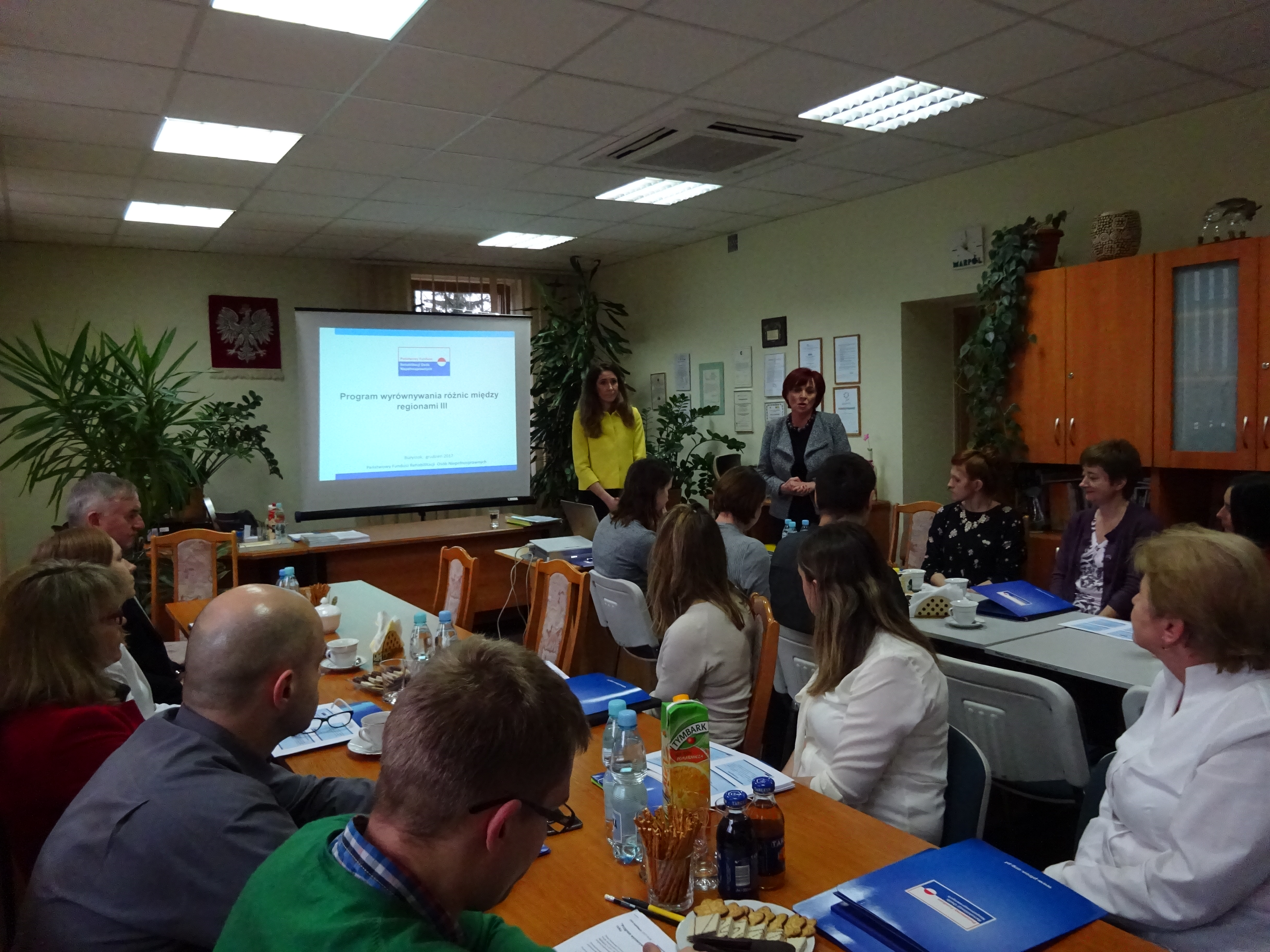 W siedzibie Oddziału Podlaskiego PFRON odbyło się spotkanie informacyjno-szkoleniowe dotyczące realizacji "Programu wyrównywania różnic między regionami III" w 2018 roku. W spotkaniu, które odbyło się 6 grudnia, wzięli udział przedstawiciele samorządów powiatowych z terenu województwa podlaskiego. Podczas szkolenia przybliżono obowiązującą treść programu oraz procedury realizacyjne. Omówiono kierunki działań oraz warunki brzegowe obowiązujące realizatorów w 2018 roku. Zaprezentowano także wykaz powiatów leżących w podregionach spełniających warunki "Programu wyrównywania różnic między regionami III" w 2018 roku.