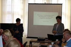 Celem spotkania było między innymi omówienie zagadnień związanych z realizacją i finansowaniem zadań samorządu wynikających z rządowego programu kompleksowego wsparcia dla rodzin "Za życiem" które przedstawiła Anna Kłos.