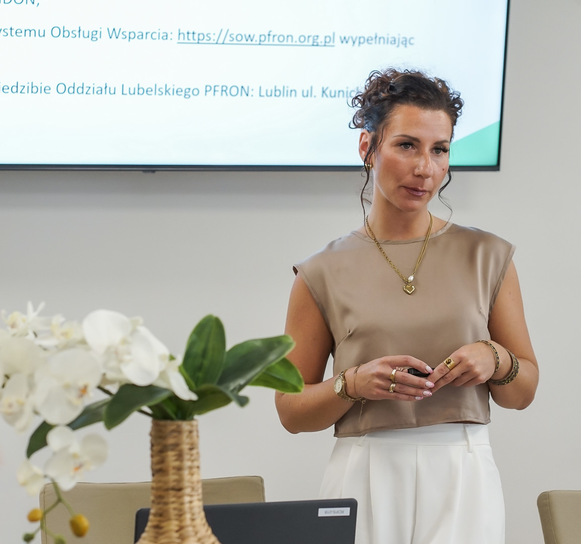 Celem wydarzenia była wymiana doświadczeń, omówienie bieżących działań oraz rozwój współpracy na rzecz osób z niepełnosprawnościami. Wśród prelegentów znalazła się Iwona Podkowa-Nowak, przedstawicielka Lubelskiego Oddziału PFRON, która przedstawiła możliwości pozyskiwania środków z Funduszu oraz dostępne formy wsparcia. Pozostałe wystąpienia dotyczyły m.in. świadczeń wspierających i praktycznych aspektów ich przyznawania. Spotkanie zakończyła dyskusja, podczas której uczestnicy wymienili się doświadczeniami, przedstawili lokalne wyzwania i sprawdzone rozwiązania, wzmacniając współpracę w regionie.